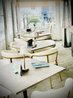 Im Außenbereich bieten wir Ihnen wettergeschützte Plätze auf unserer Pergola – abends geheizt durch Heizstrahler mit angenehmer Flamme – sowie weitere Tische unter unseren großen Sonnenschirmen. Hier sorgen große Palmen für das richtige Urlaubsgefühl.